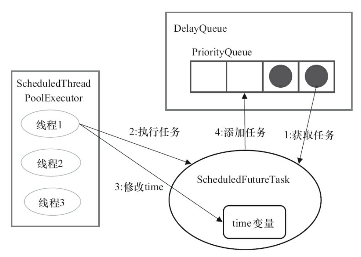 - 线程1修改ScheduledFutureTask的time变量为下次将要被执行的时间