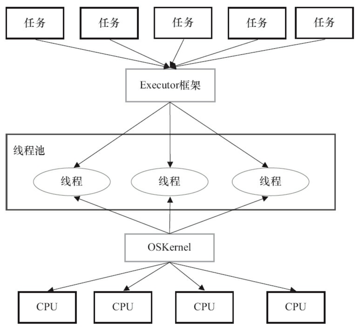 从图中可以看出,应用程序通过Executor框架控制上层的调度;而下层的调度由操作系统内核控制,下层的调度不受应用程序的控制