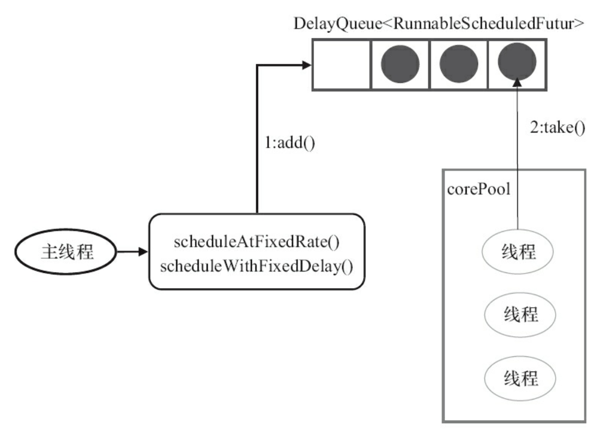 ScheduledThreadPoolExecutor的执行示意图如下: