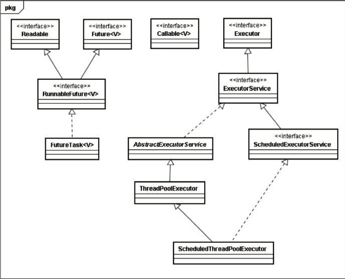 - 任务的执行:包括任务执行机制的核心接口Executor,以及继承自Executor的ExecutorService接口.Executor框架有两个关键类实现了ExecutorService接口(ThreadPoolExecutor和ScheduledThreadPoolExecutor)